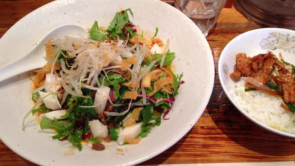 限定麺チケットで冷やし坦々麺と頼んだところ、ライスの代わりに『ミニ焼肉丼』もつけられます、とのことで、即答で頼んでみました!