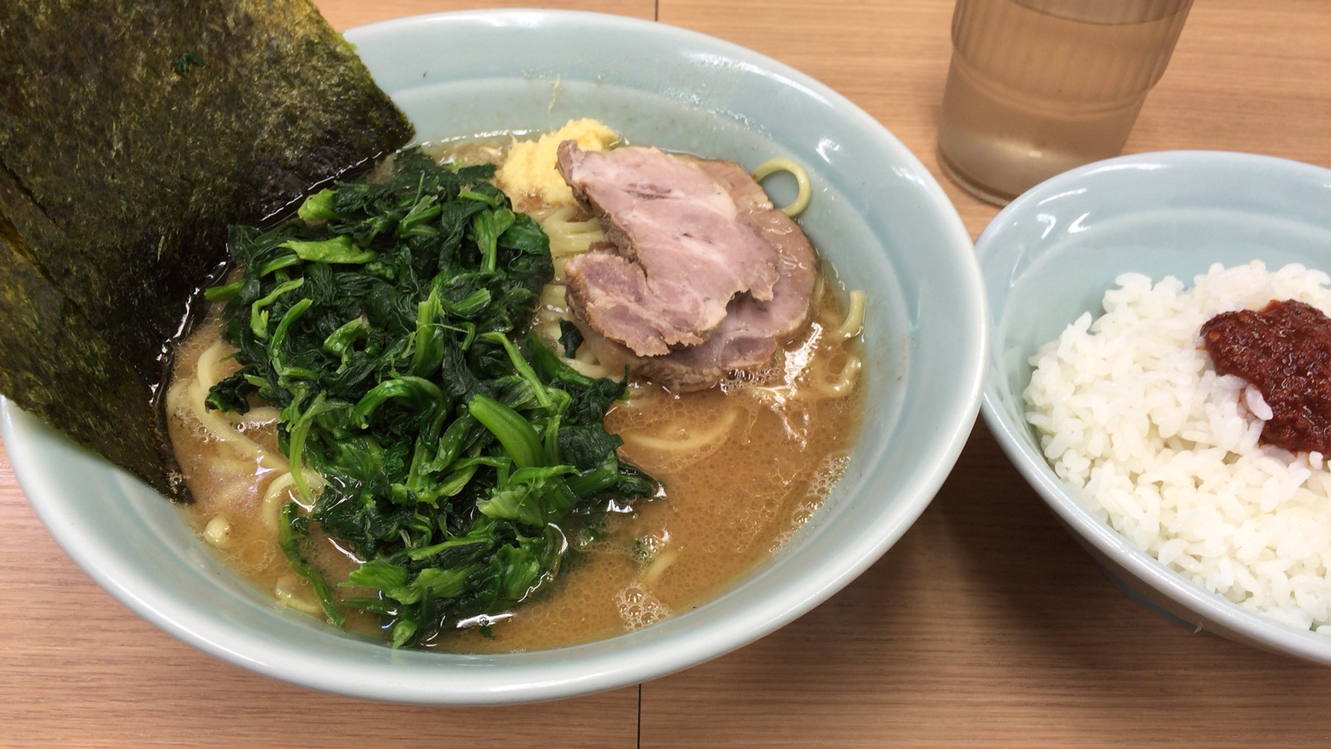 のり増しラーメン650円が目を引きましたがレンソウ気分(?)だったのでラーメン並とほうれん草増し、好みはKKR(カタ・濃い・ライス)でw