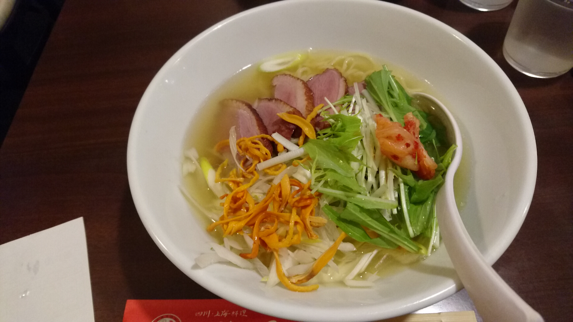 ラーメンに本物の冬虫夏草の花が入っている、とは一言も断言してないし、お品書きの説明が中途半端でツッコミどころ満載でしたが、鴨肉もスープも美味しかったので不問ということでw麺は正統派中華っぽいちぢれ麺、思いのほか伸びずに最後までツルリとしてました。