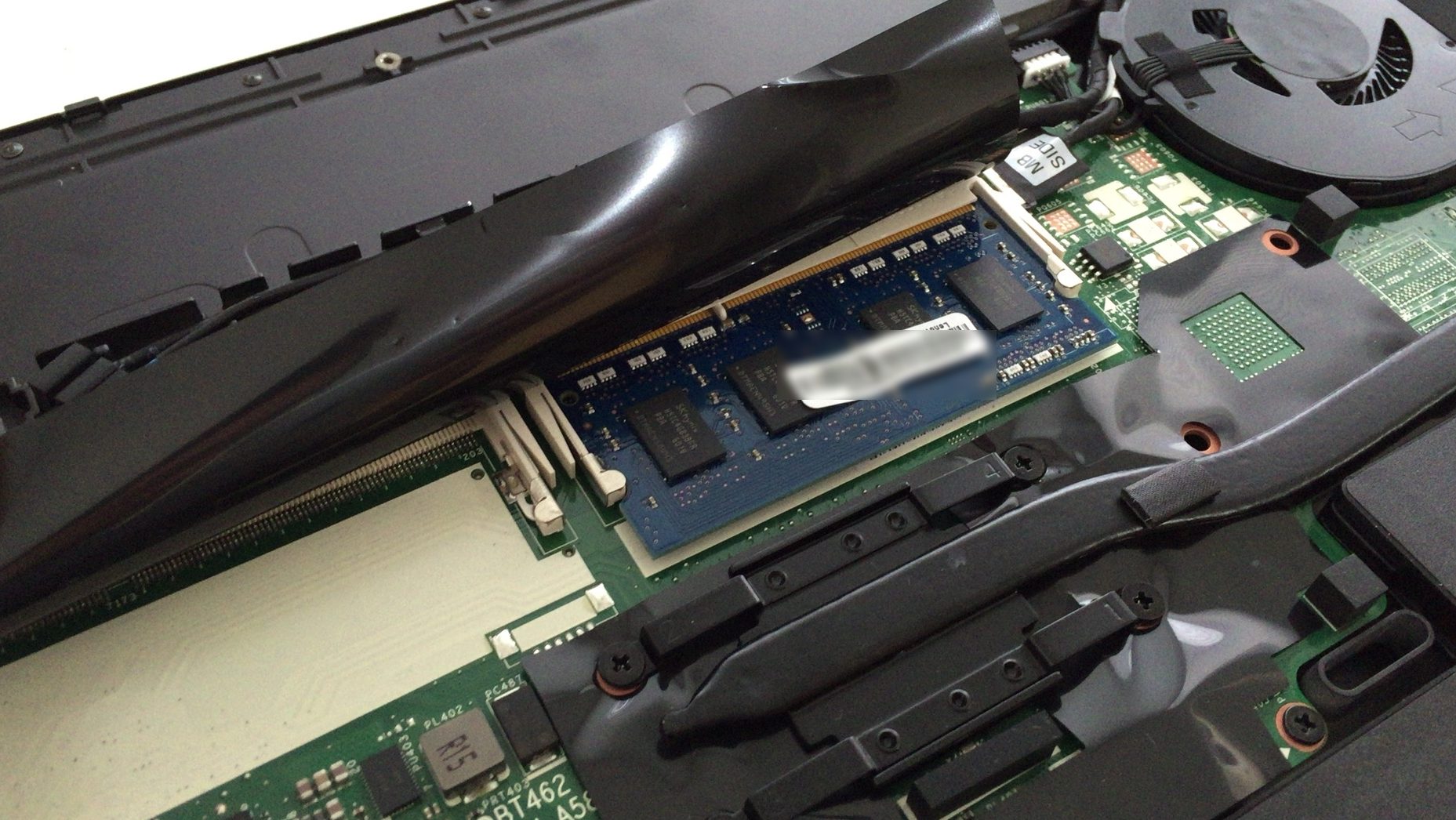 まず購入状態のメモリスロット。標準メモリはサムスン製でした。向かって左側が空きスロットになってます。