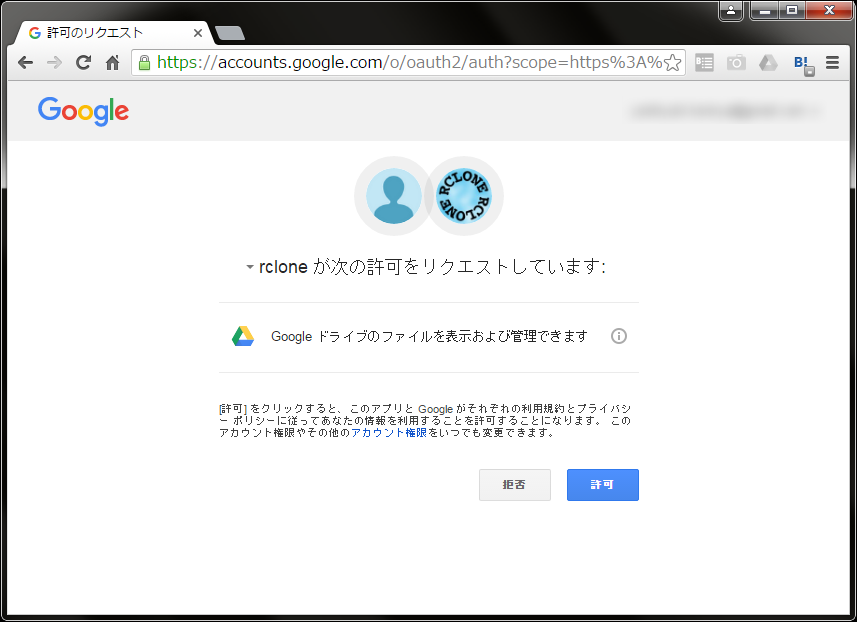 つづけてRcloneのリクエスト許可をします。