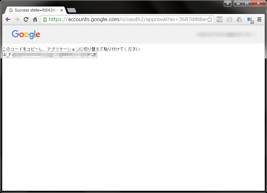 許可ボタンをクリックすると、認証コードが発行されます。