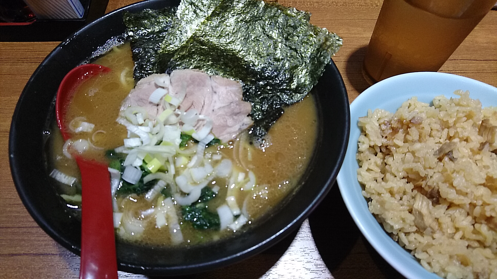 3分ほどでライス、ラーメンどんぶりをいただきます。