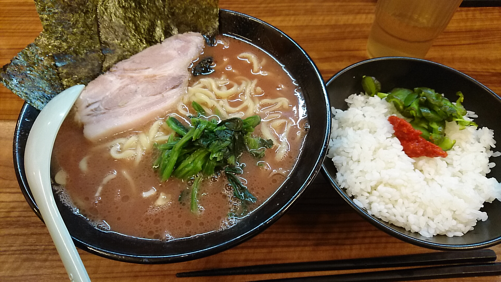 武蔵家系らしくアブラは少なめ。他のお客さんの注文を聞いていると、濃い目で頼む人が多かったように思われます。