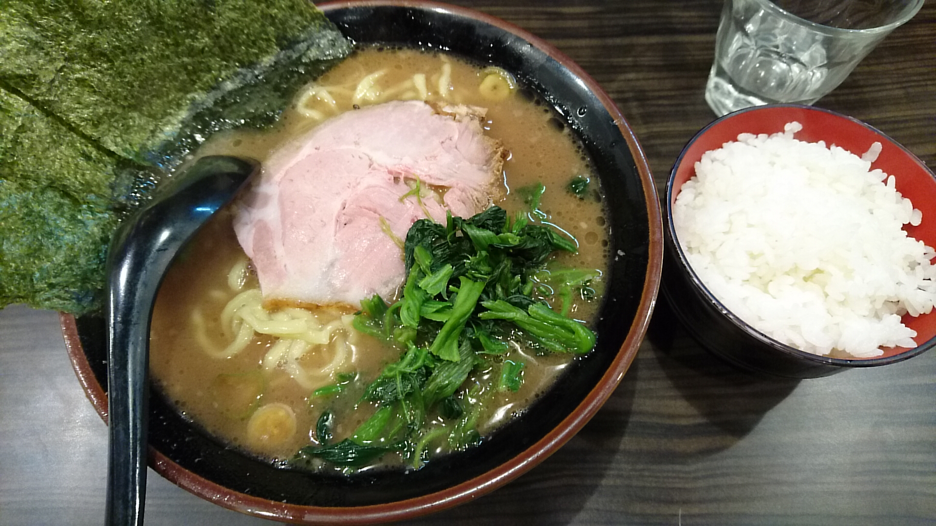 昨年訪れた神田のわいず本店で海苔が1枚きりだったので海苔増しはマストでしょう、ということで注文は海苔ラーメン並にライス、お好みは全て普通。