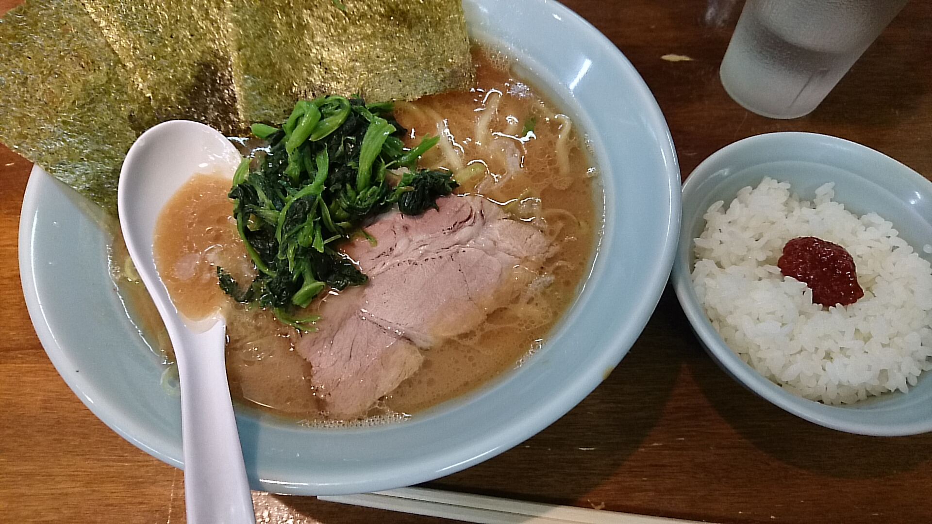 家系ではあまり重視されない刻みネギが割と目立ちました。ライスは海苔3枚で食べきれる量になっており、海苔増しするなら”小”では足りないかも。