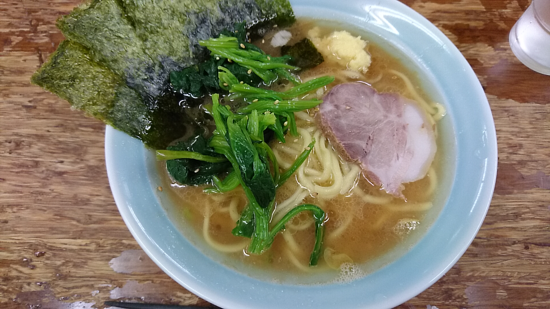 お約束のラーメン並に麺固め、そして今日は忘れずに国産ほうれん草。