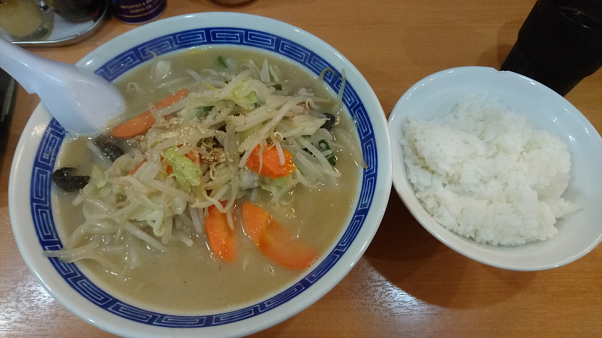 またランチタイムは16時まで 、ライスまたは味玉サービスとのことで、注文は野菜タンメン中盛+ライスに。