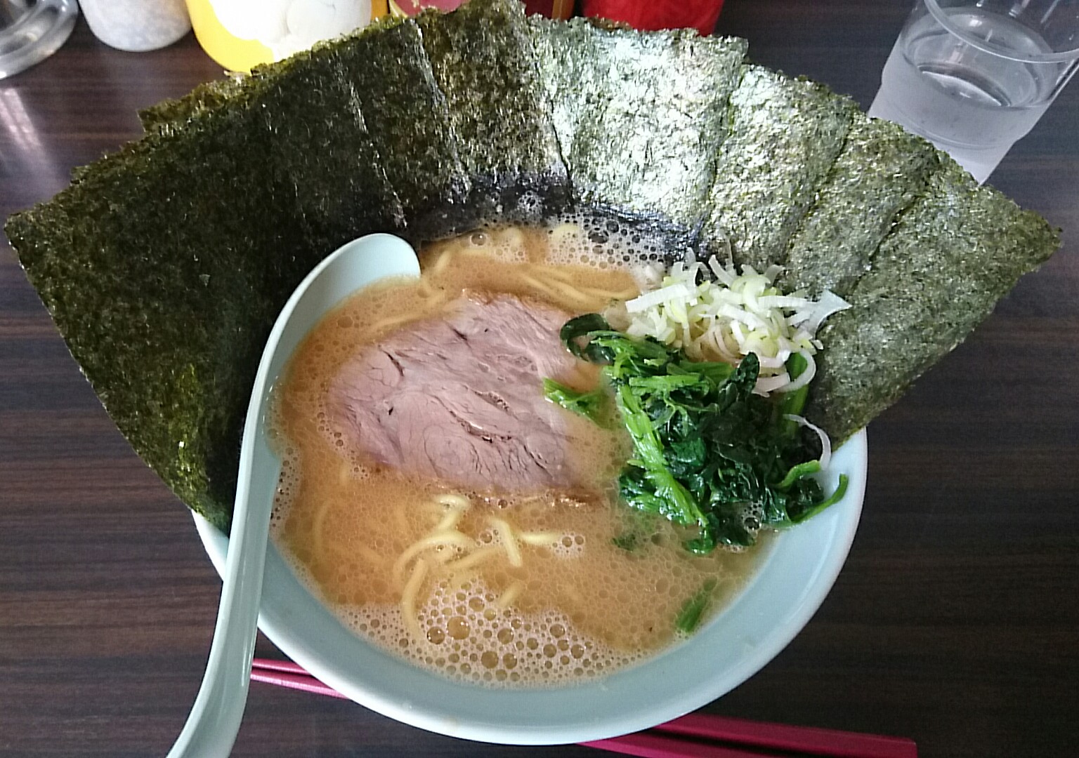 もともとこちらは家系という印象は無く、以前(といっても、すごく前)はわかめやサヤエンドウなどをトッピングしていた覚えがありますが、今回はレンソウ+ネギで『家系スタイル』になってました。移転後からでしょうか?