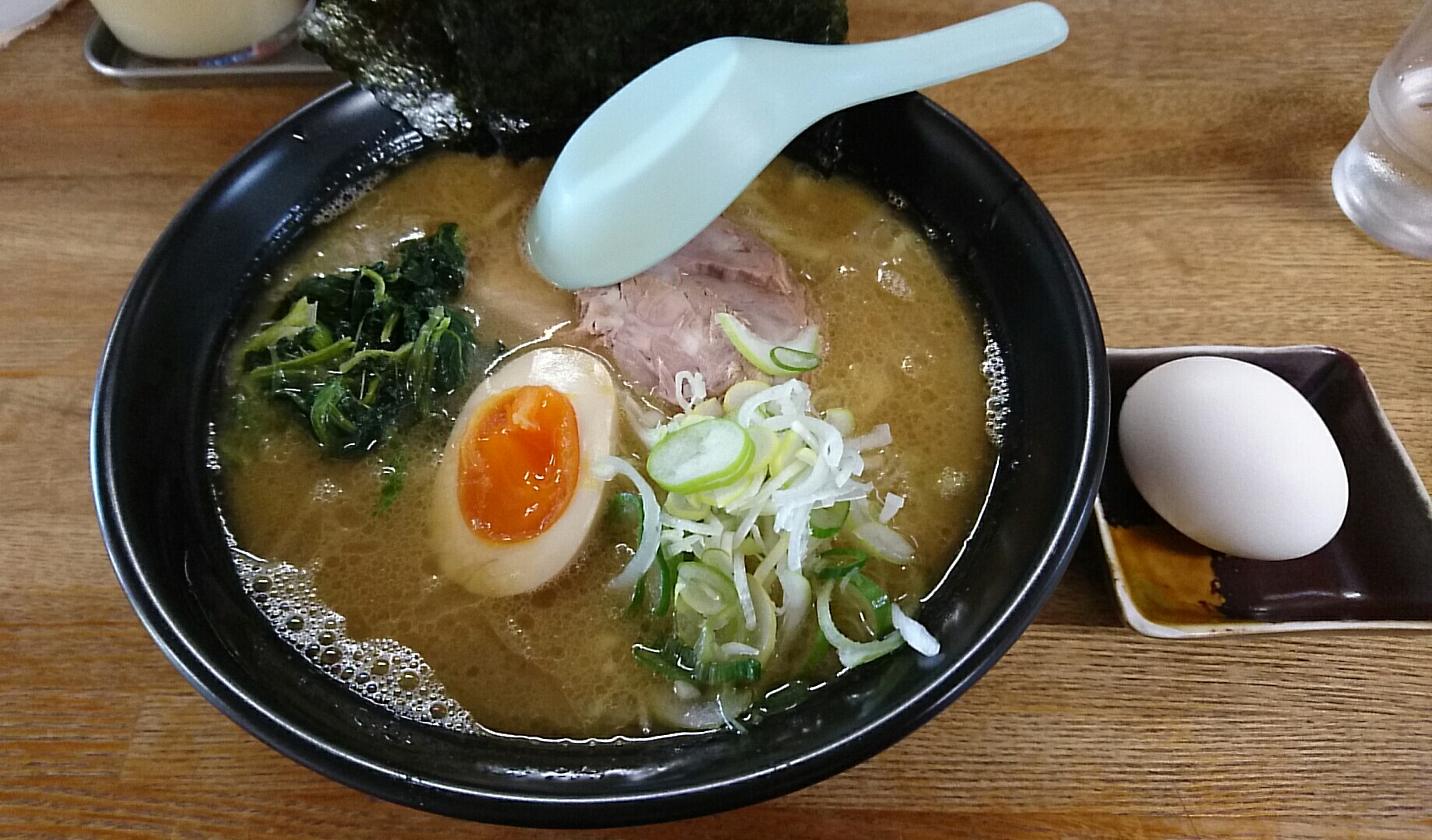 豚骨醤油ラーメン(700円)、サービスの茹で卵