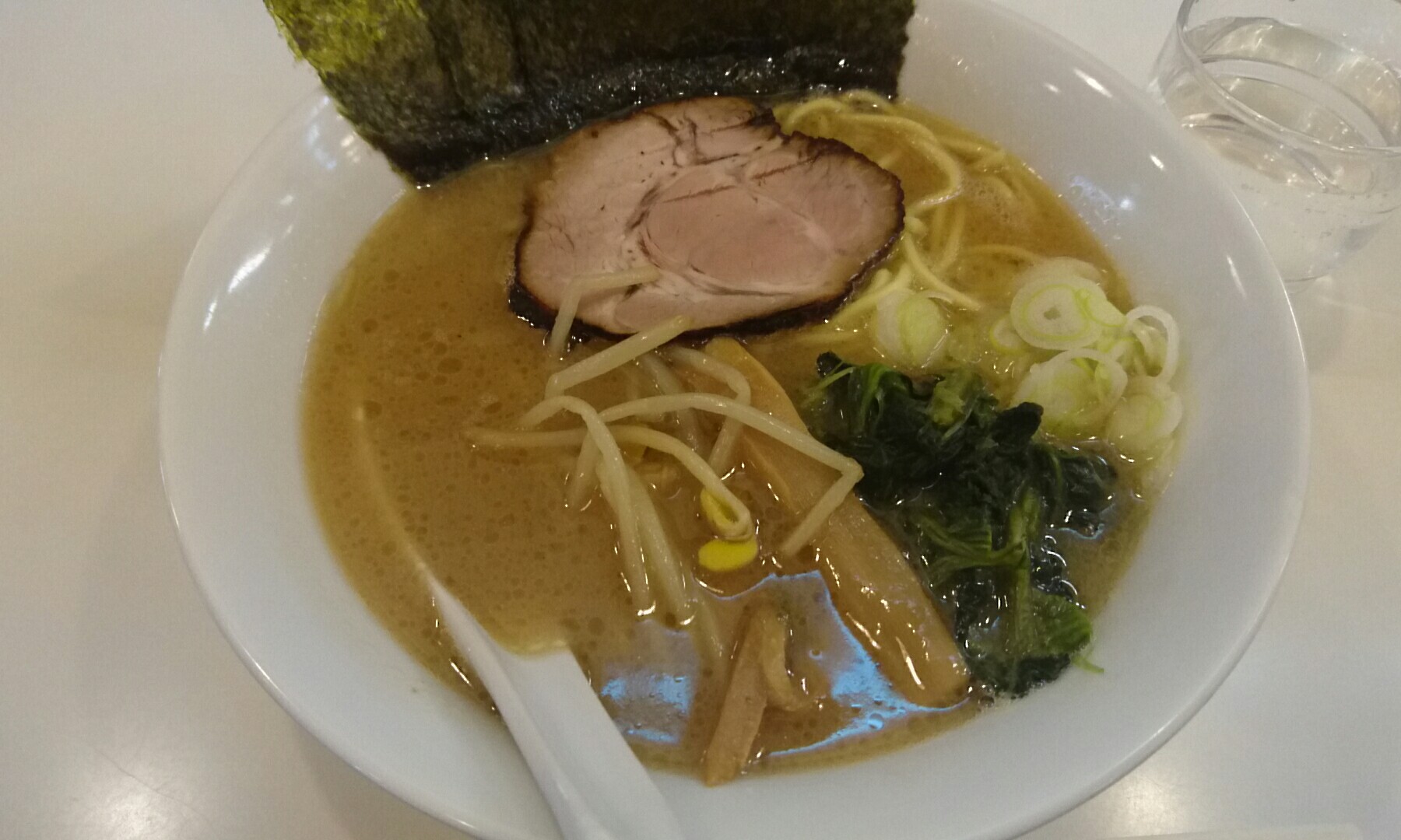 海苔は青みのあるタイプでしけ気味、レンソウ、メンマ、もやしも業務用と思われます。チャーシューは薄目の味付けでしたが肉質が良いものを使われていて美味しい!ネギは刻みたてでしゃきしゃき。