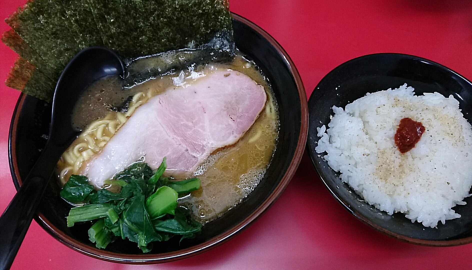 前回と同じくラーメン並に海苔増しと半ライス、お好みは麺固めで。