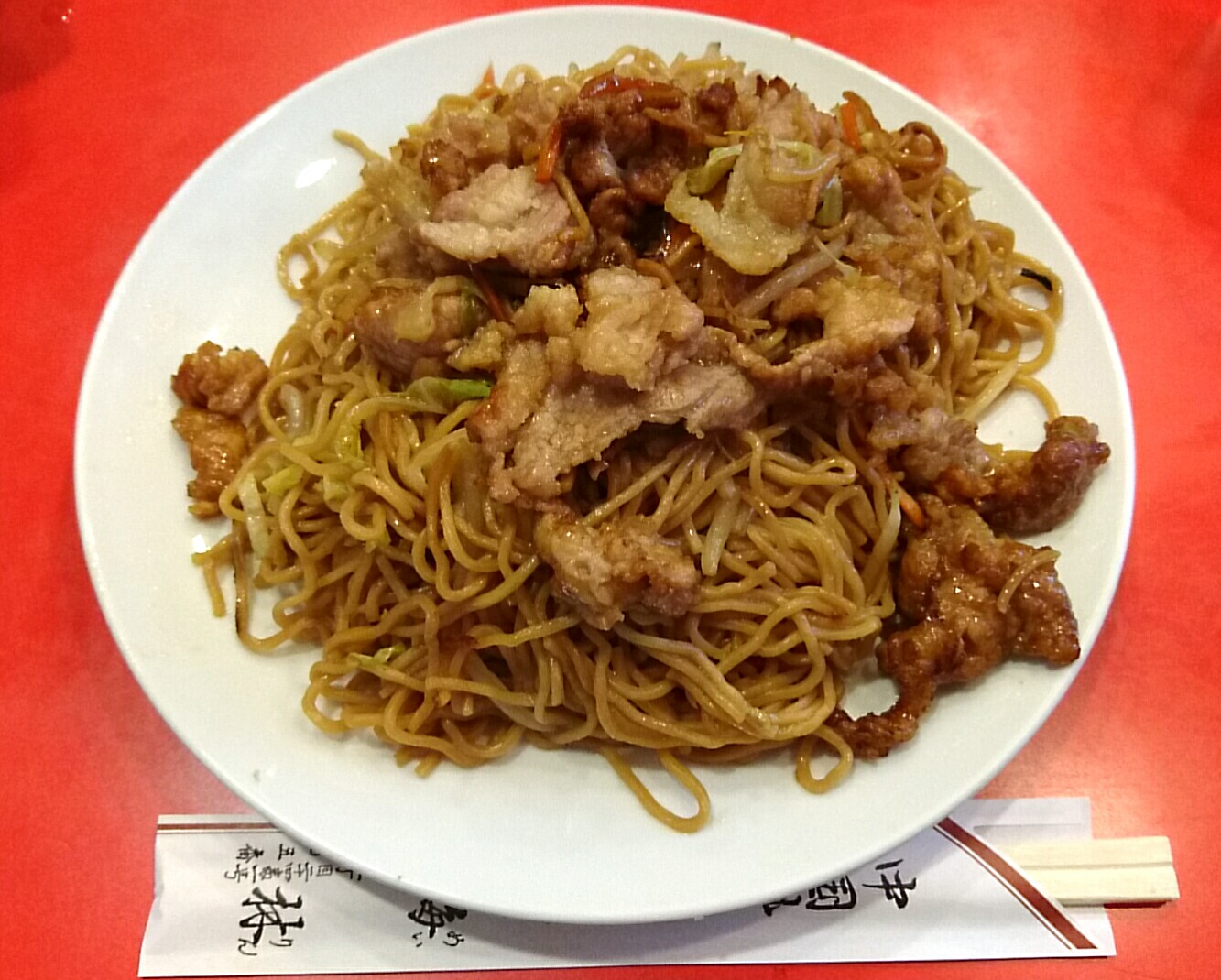 注文は焼きそばとラーメンを合わせた麺類がメニュー全体の約半分、同僚からオススメは焼きそばと聞いたので『肉上海焼きそば』を並で。