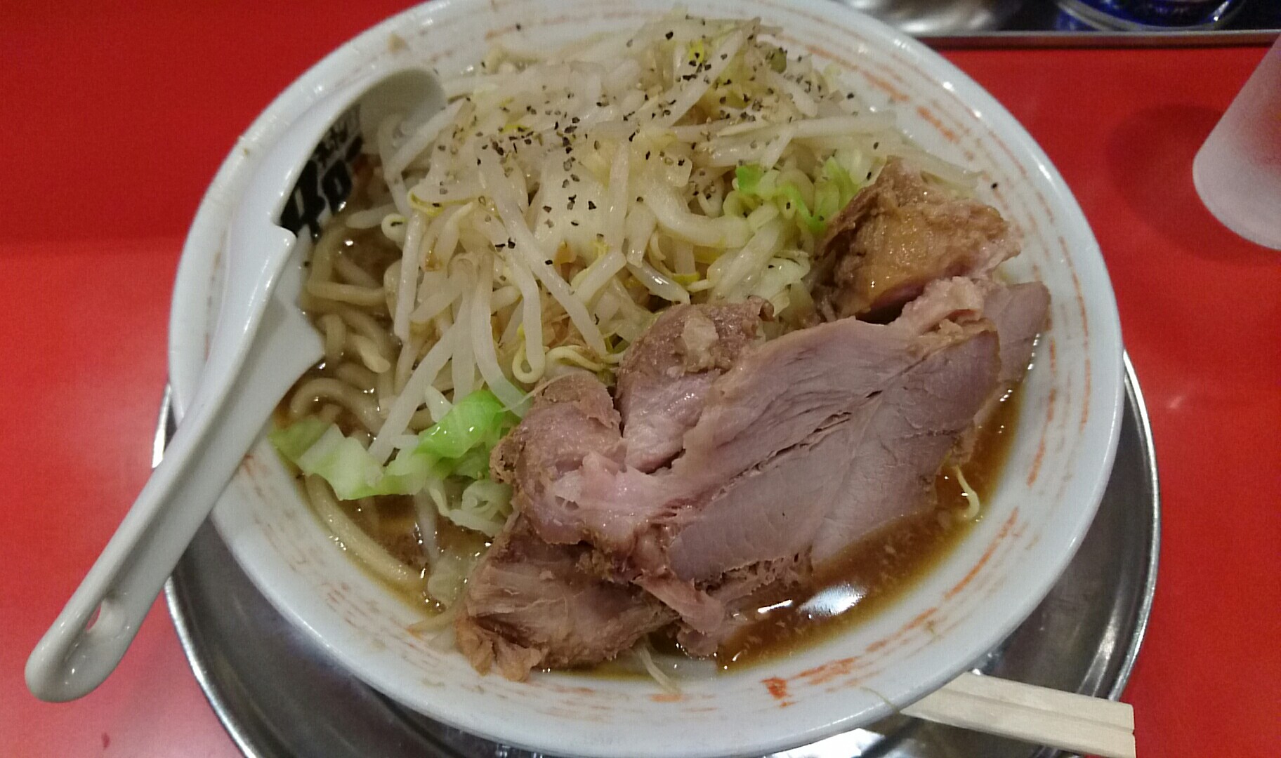ヤサイはコール無しだとだいぶおとなしい分量で、問題なく食べきれました。これならヤサイ増しでもアリかな(などと、油断してはいけないw)