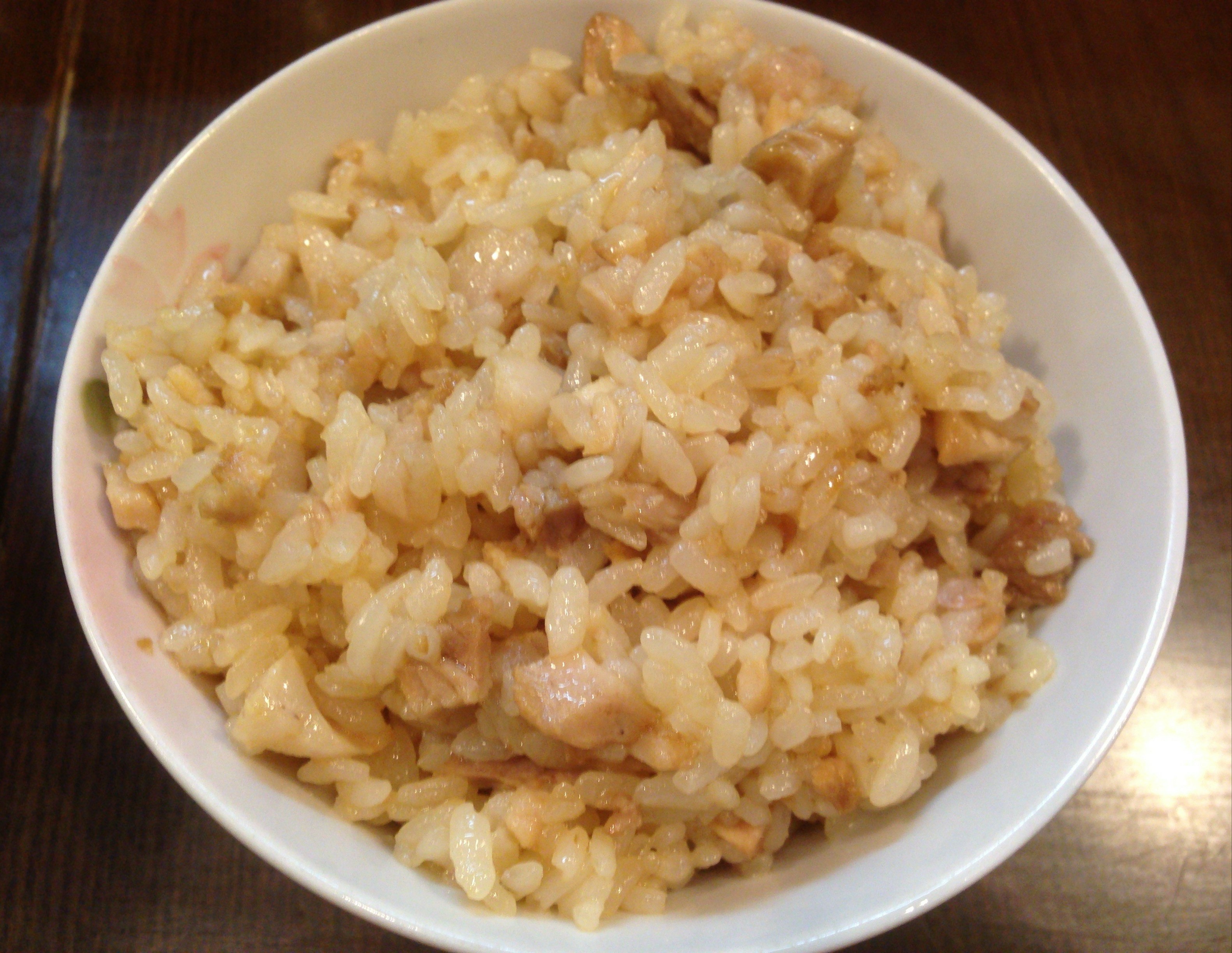 肉ごはんは、ラーメンのどんぶりをいただいた後で作り始めて、出来たてでお茶碗をいただきます。