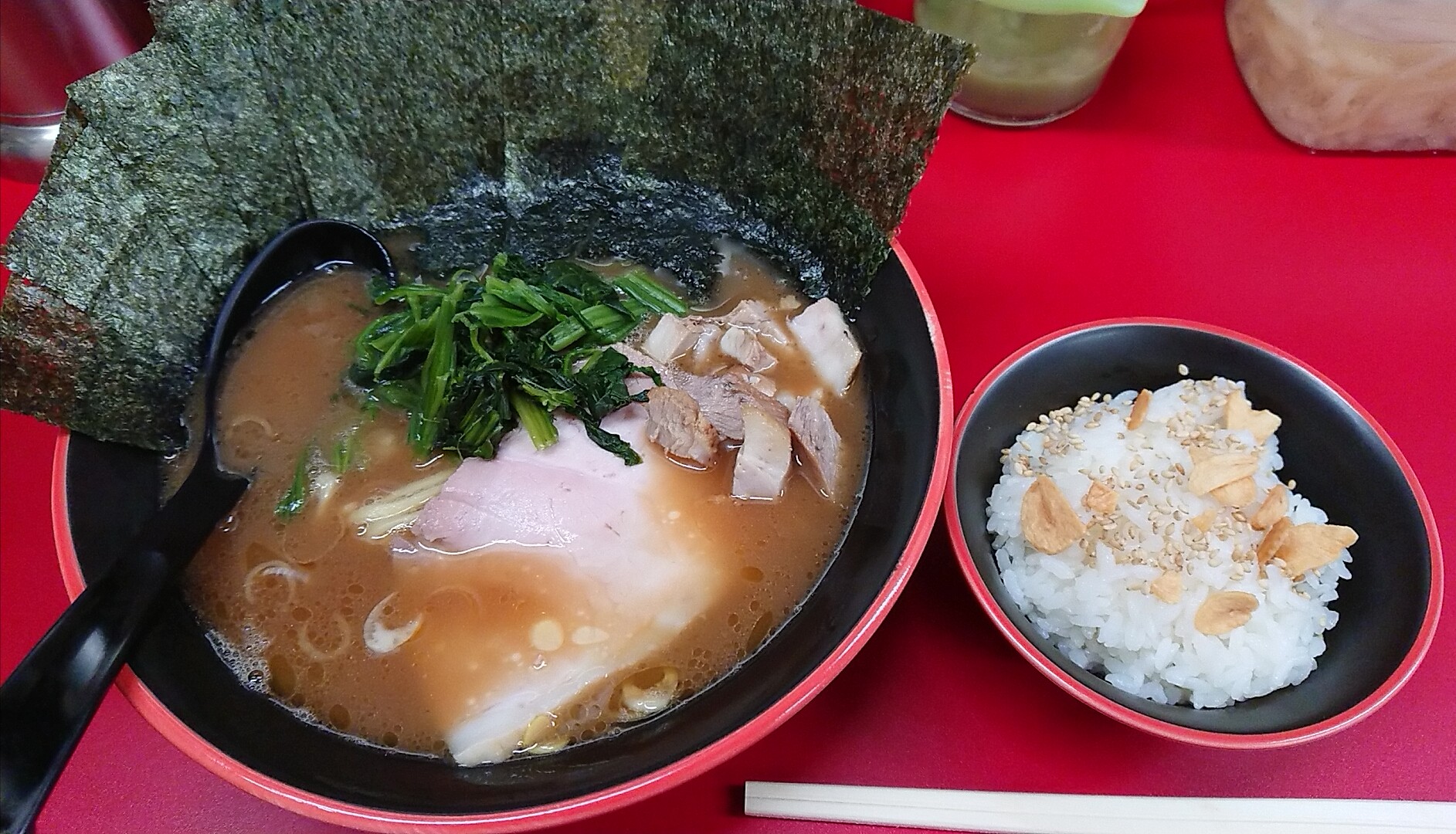 11時50分頃の到着で先客2。久々なのでスタンダードにラーメン並に海苔増し、ライスのデフォルトセットで。お好みはすべて普通。ここんとこ海苔増し+ライスの黄金コンビを控えていたので、この組み合わせも久々です。