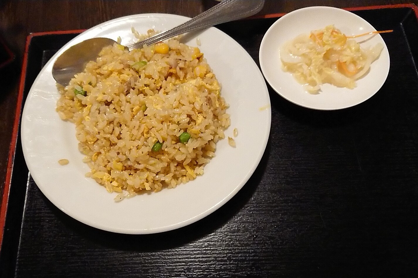 注文が立て込んでいたようで、10分ほど待って先になぜかチャーハンだけトレーに載った状態で渡されたので、先にチャーハンをいただきつつ、しばらくして刀削麺のどんぶりも配膳されました。
