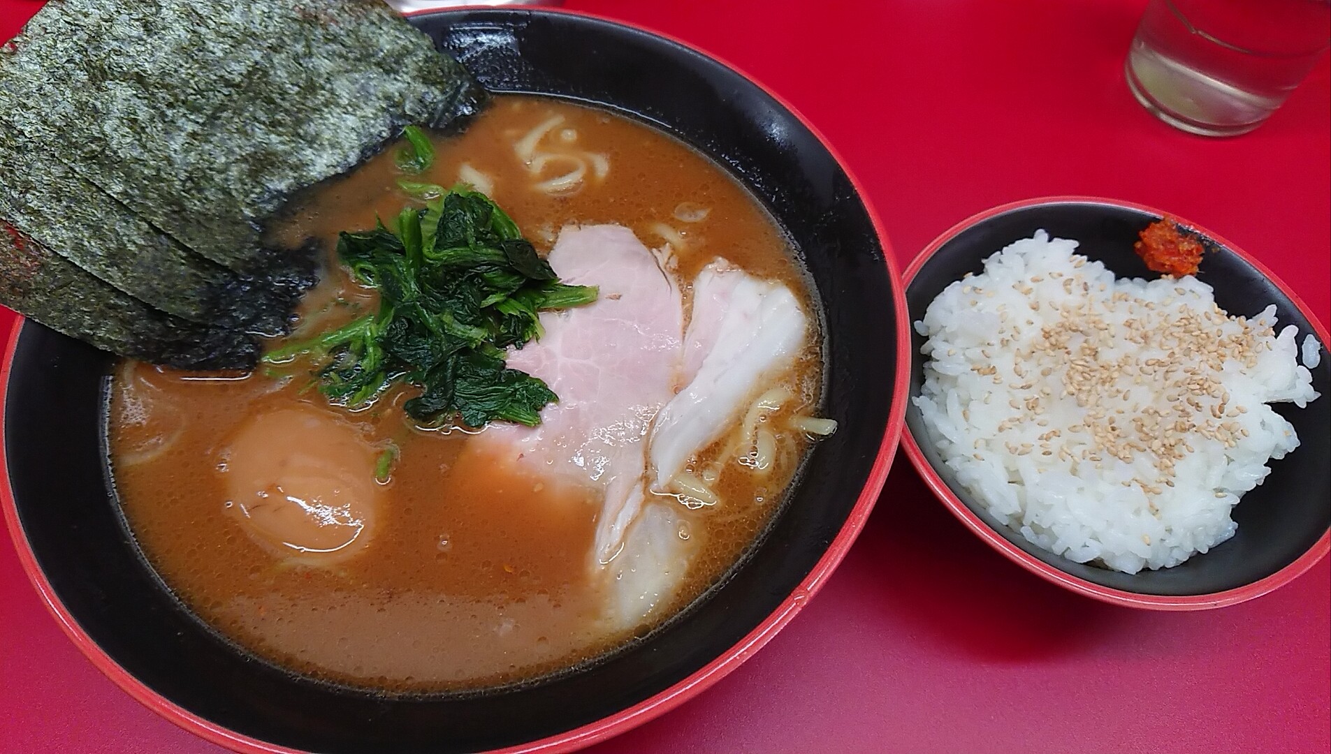 年明け最初の家系はあえて醤油ではなく味噌をチョイス。トッピングは味玉とお約束の半ライス。