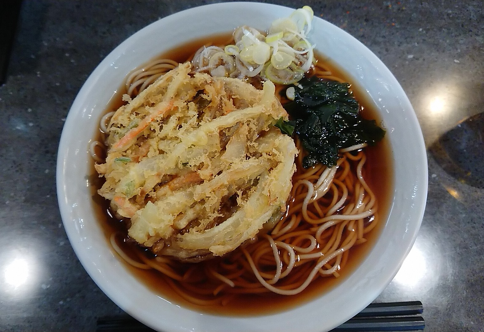 そんな中、一人だけ天ぷらそばを、しかも大盛にしちゃった、このまさかのアウェイ感!