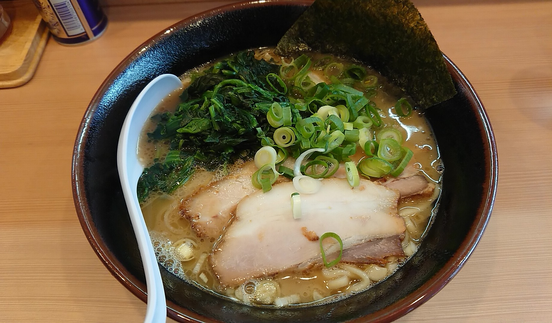 家系を標榜しているわけではなく、豚骨醤油ラーメンはデフォルトではほうれん草無しだったのでトッピングはマストですね。