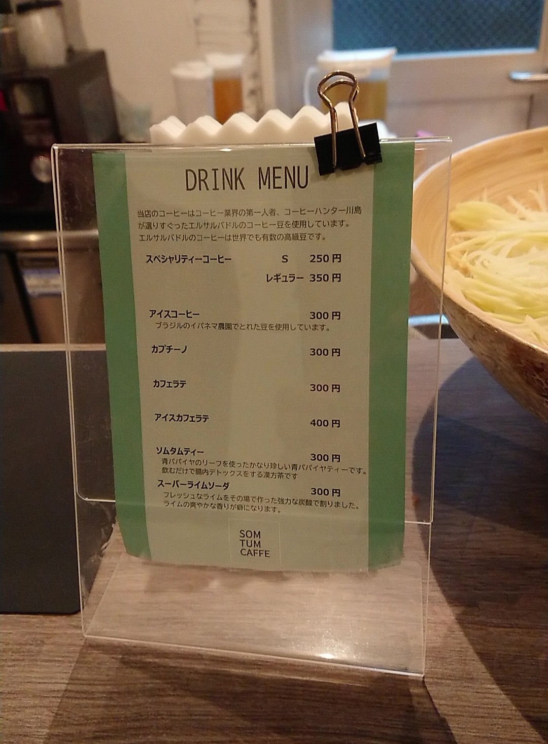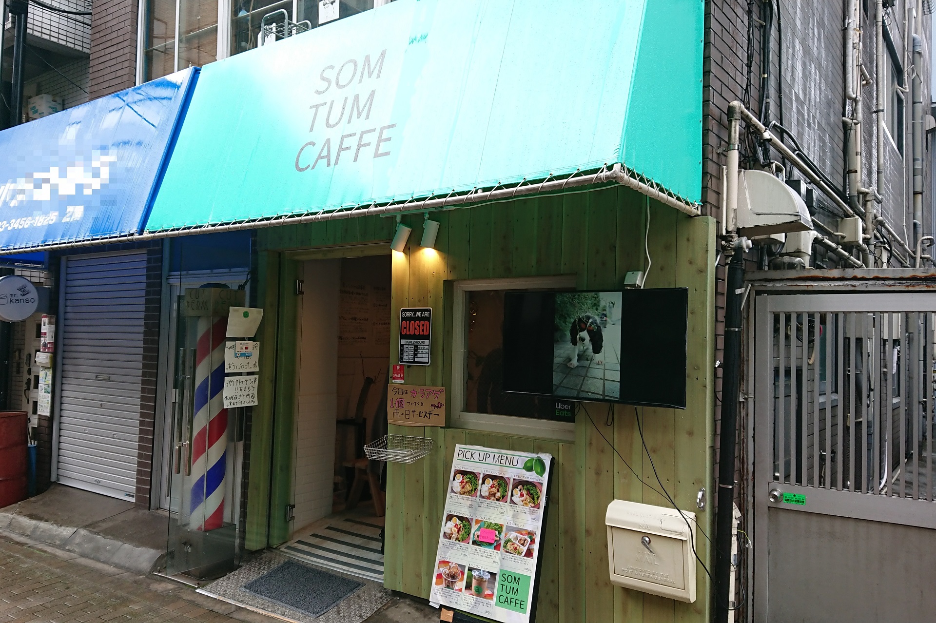 今回は芝浦口から徒歩5分程度のところにある『ソムタムカフェ』へ。こちらは店名の通り、タイ料理『ソムタム』だけを提供する専門店です。