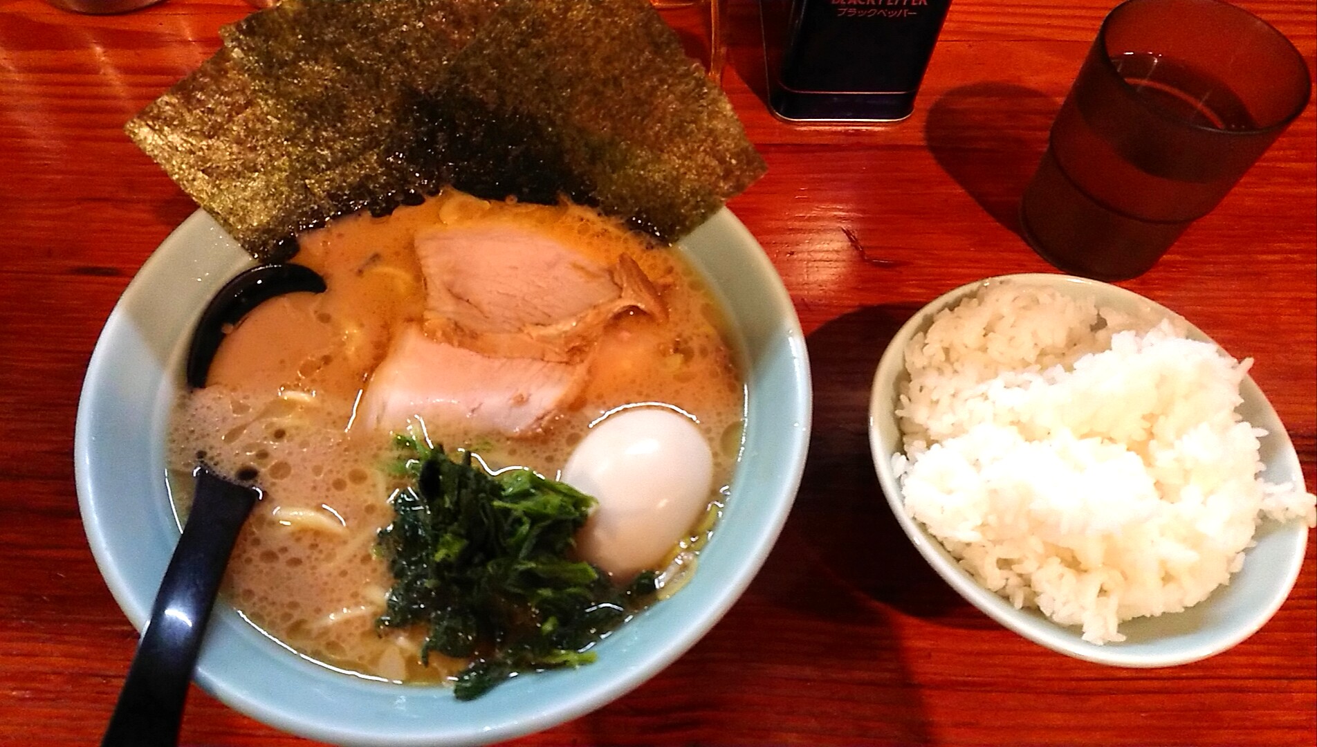 21時過ぎの訪問で先客2、後客5。注文はラーメン並に味玉+ライス、固め濃いめオーダーです。
