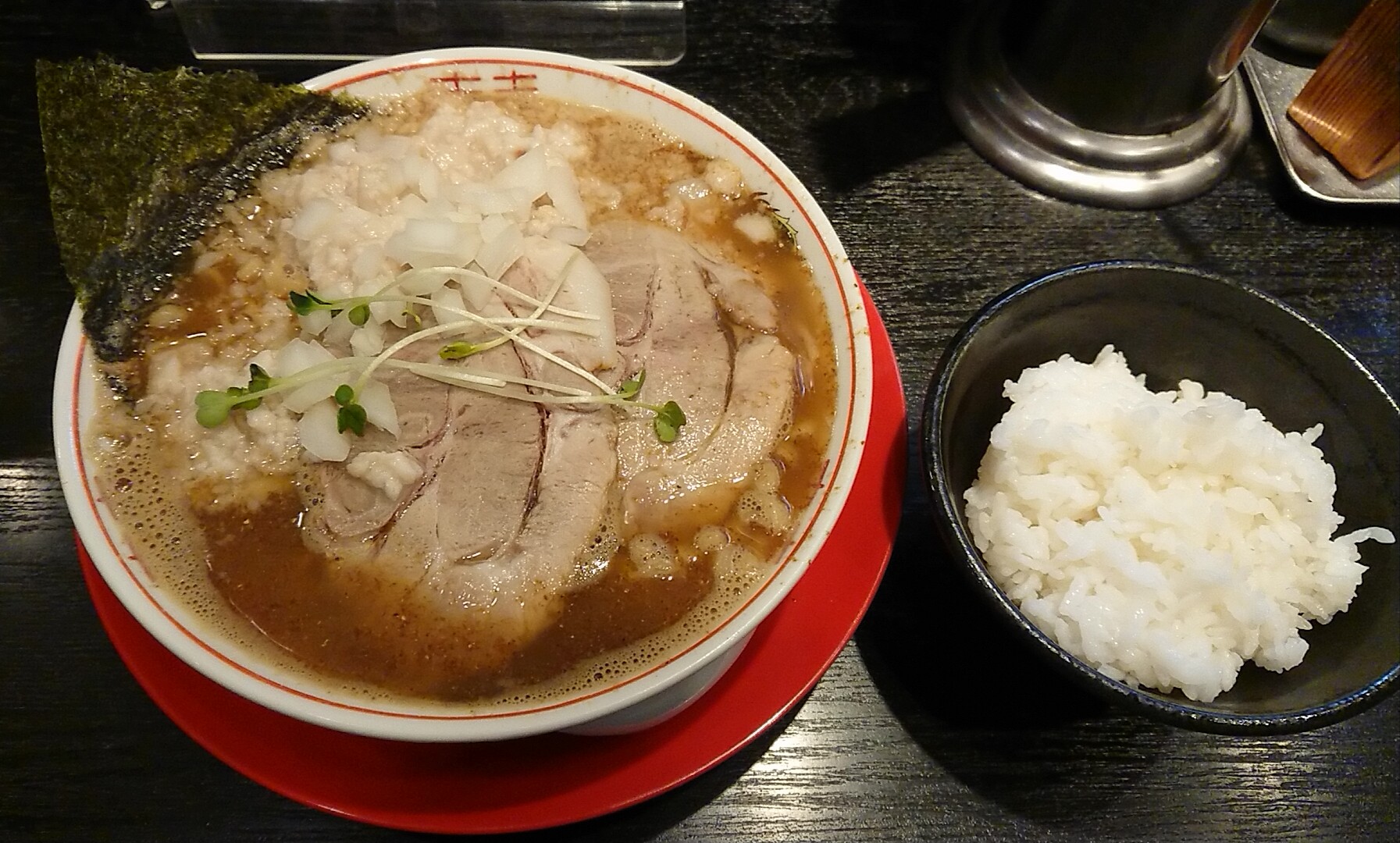 こちらは麺の大盛が無料とのことで、つい大盛オーダーに!注文時にライスを頼んでいたので炭水化物ヘブンになってしまったw