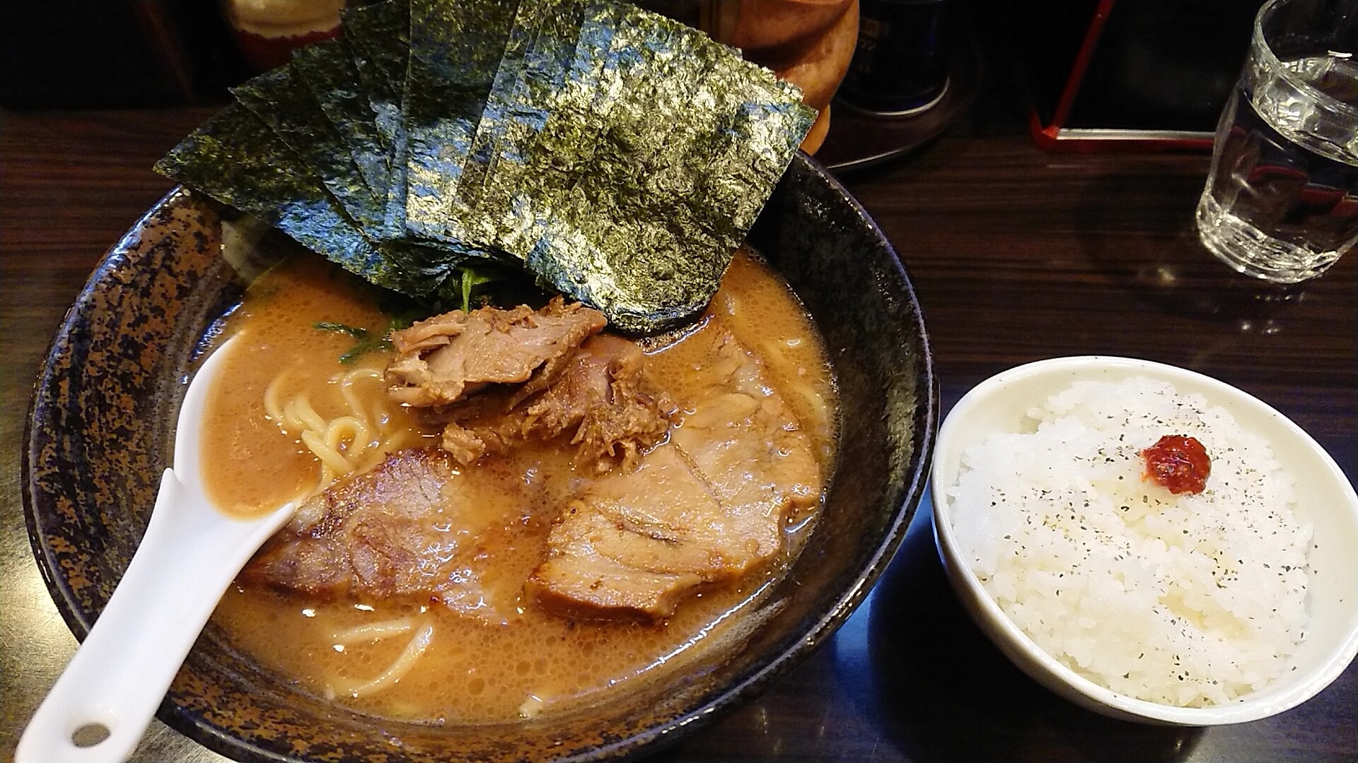 ということで注文は豚骨醤油ラーメンに半ライスと海苔の黄金コンビ!お好みオーダーは特になしでした。