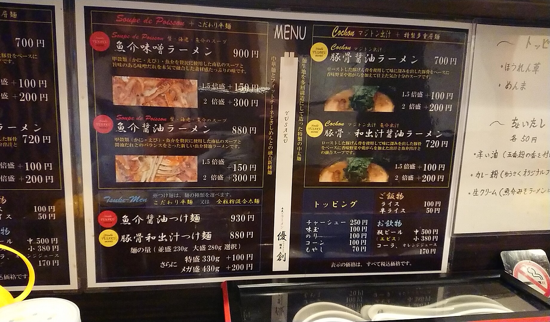 こちらはマイレビさんのレビューではフランス料理をバックグラウンドに持つオーナーさんによるエビ、カニを使った魚介味噌ラーメンが人気とのことですが、もう一つのメインメニューは豚骨醤油とのことで、