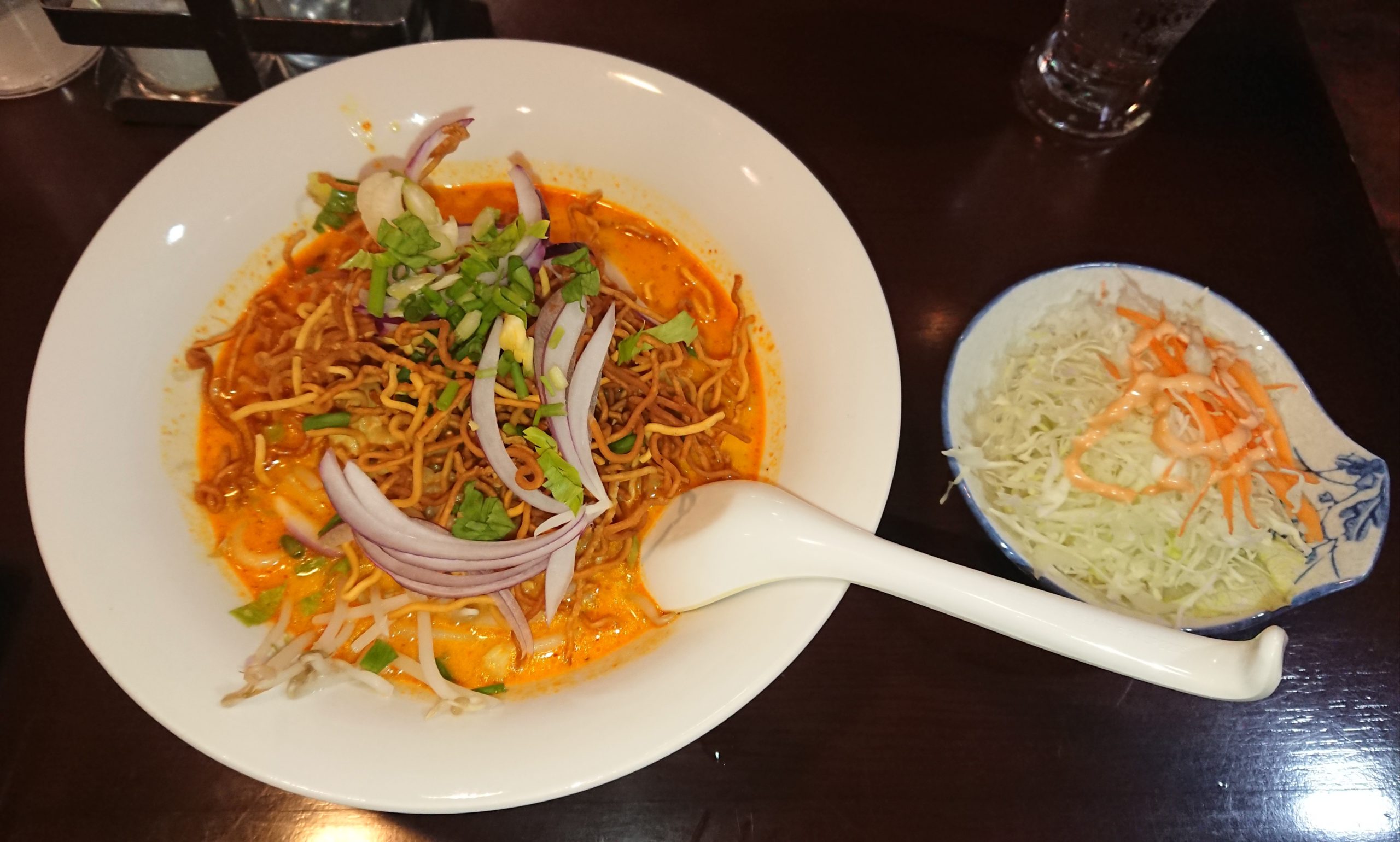 独特の滑らかで甘みのあるカレースープで食べやすい一方、パキパキの『揚げ麺』が割と多く、メインの麺になかなかたどり着けず、少し伸びてしまったw