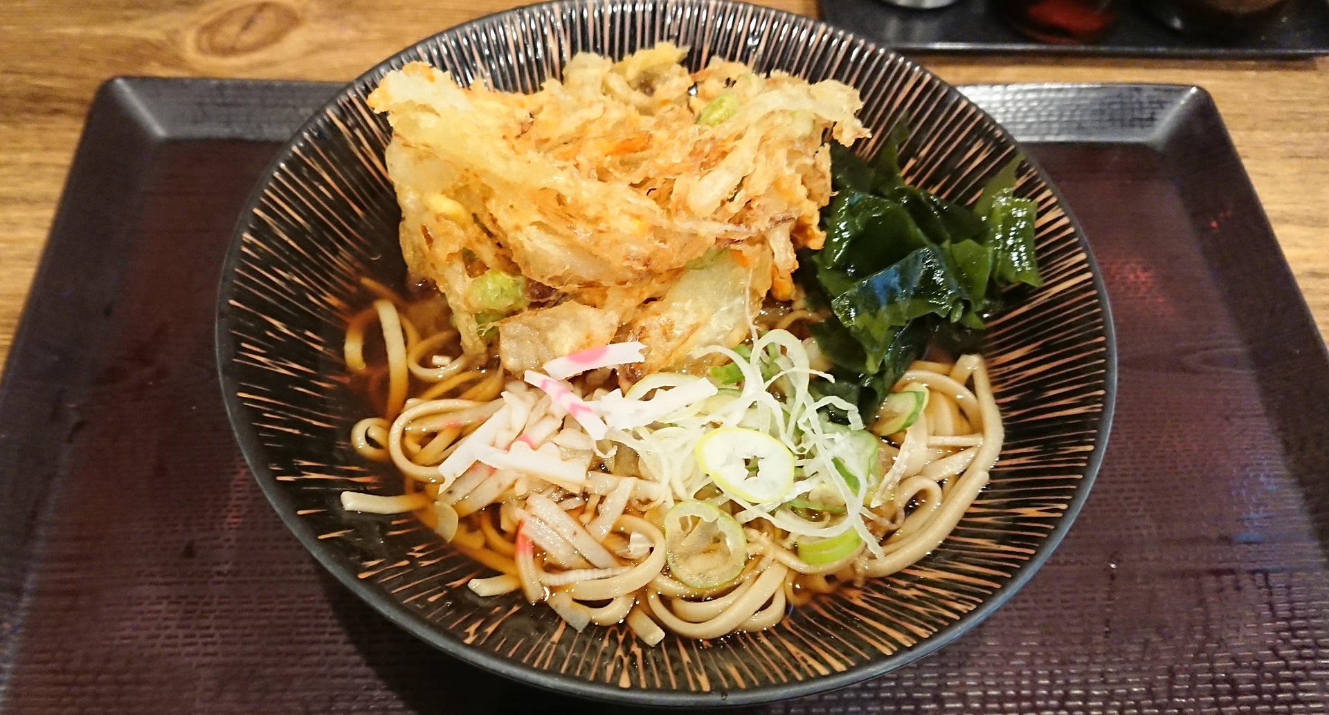 具はかき揚げ、ワカメ、ネギ、刻みナルト。