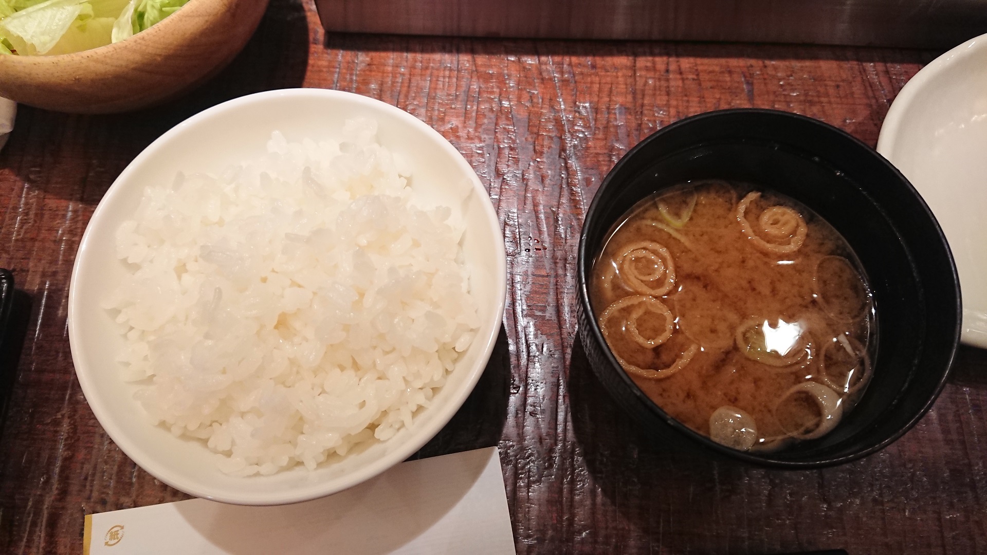 セットのサラダ、つづけてライス、みそ汁、ハンバーグと続きます。