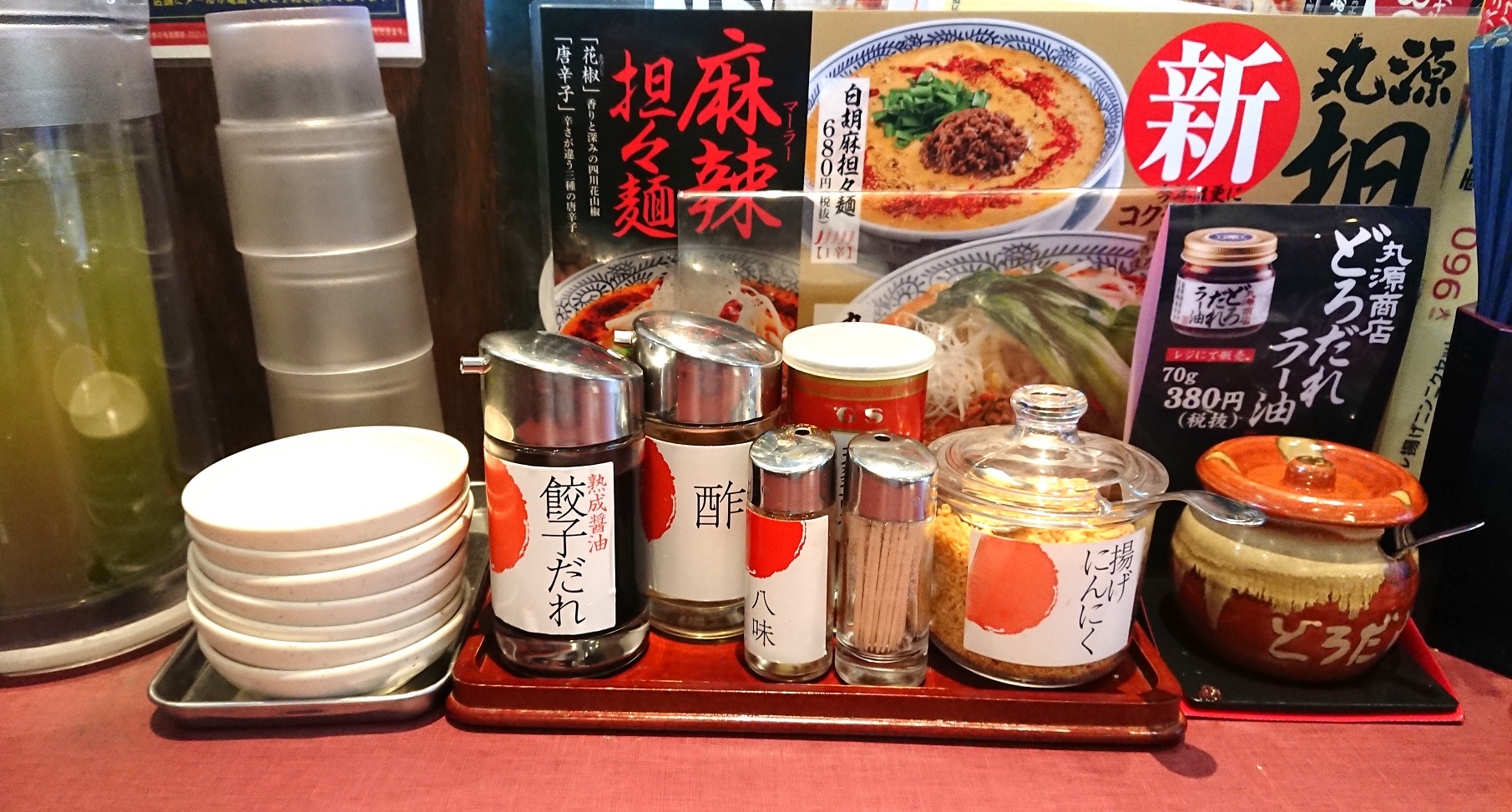 カウンターは薬味のラインナップよりは餃子向けの醤油やお酢、ラー油などが中心。