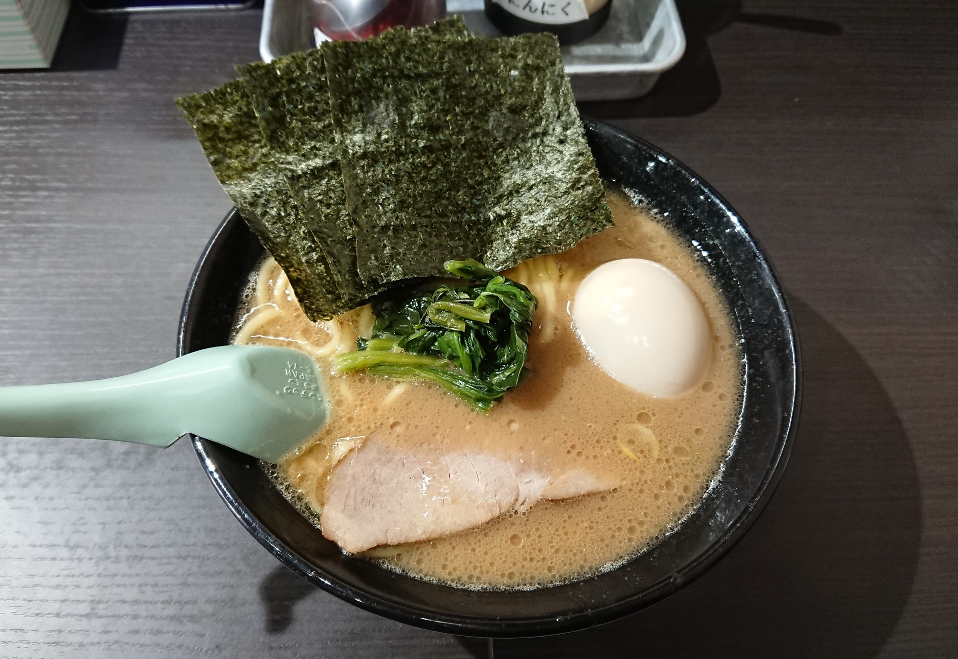 連食しようと思ってたのでライスは無しにして、注文はラーメン並(醤油)に味玉。お好みはすべて普通でオーダー。