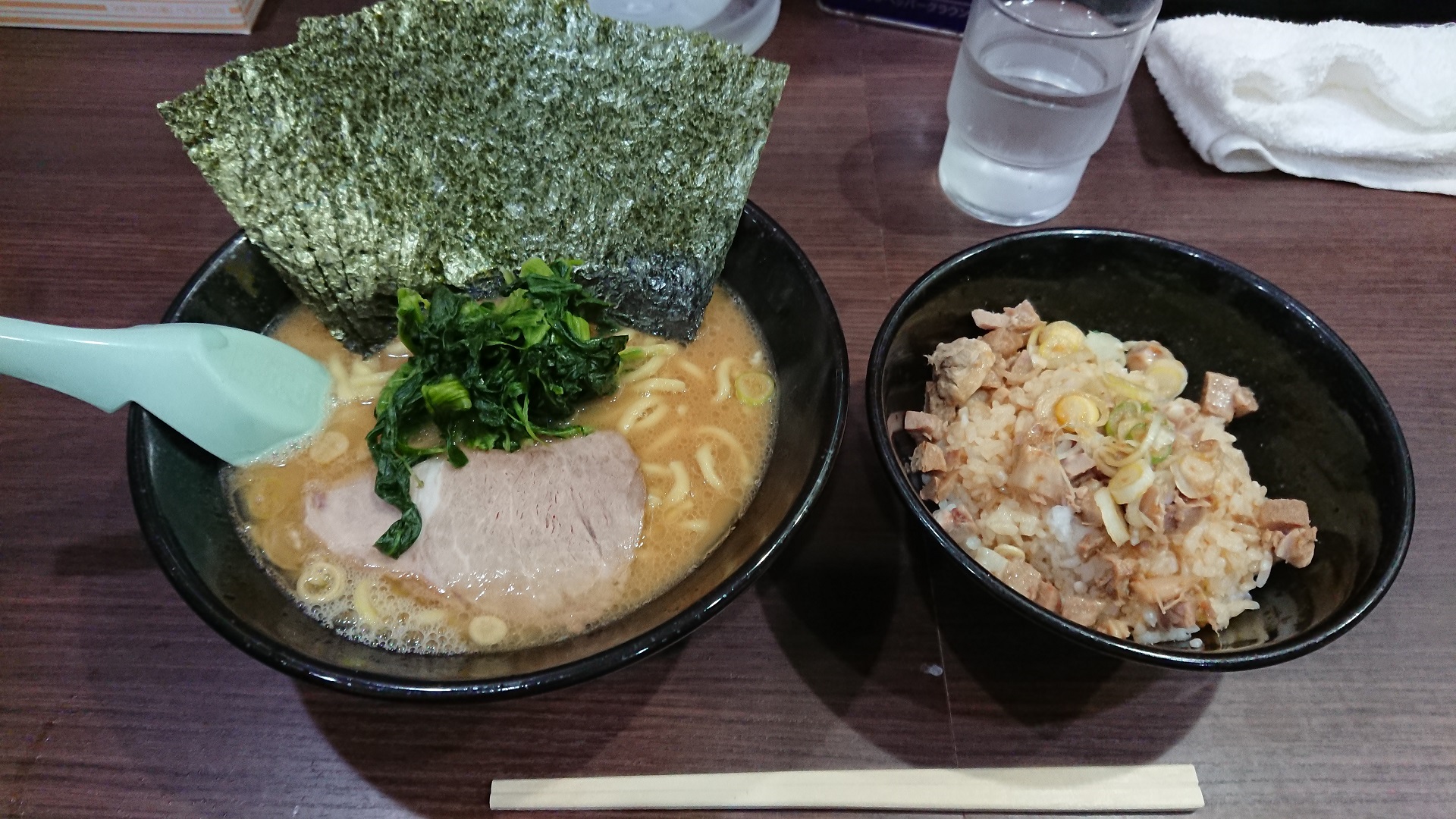 先に食券を渡しているからか、回転が速いですね。入店後6~7分でラーメン、チャーシュー丼をいただきます。