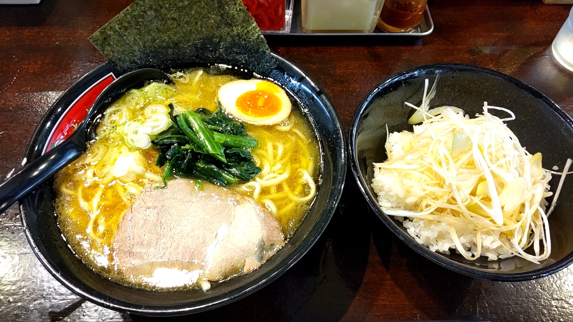ほうれん草はややクタで少な目、刻みネギのほうがボリューム、存在感共にあります。味玉は見た目より濃いめの味付けで、主張がしっかりとしたもの。