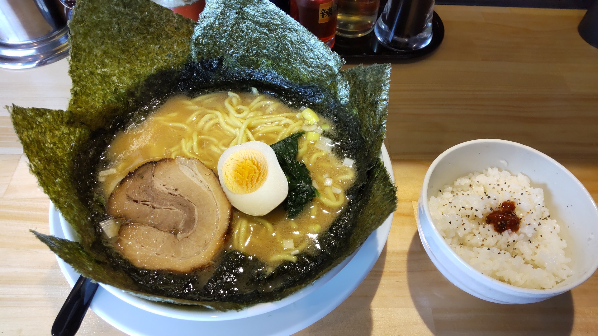 注文はラーメン並に海苔増しと小ライス。券売機をよく見たら、『ラーメン』の真下に『海苔ラーメン』のボタンがありました(^_^;)オオット