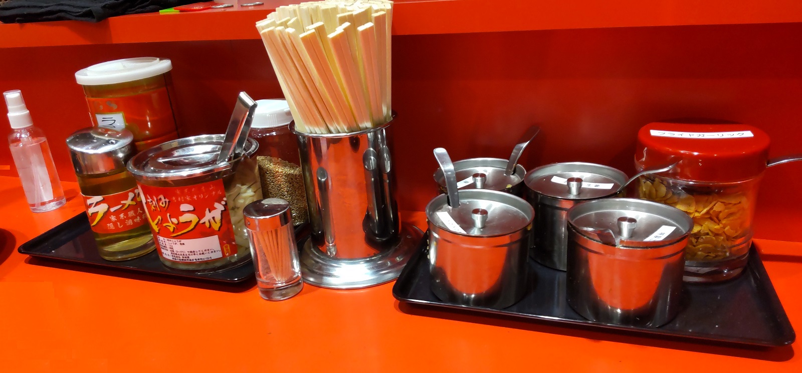 食券購入後、10分ほどで店内へ案内されました。カウンター8席と、おそらく直系の店舗では一番キャパシティが小さいですね。