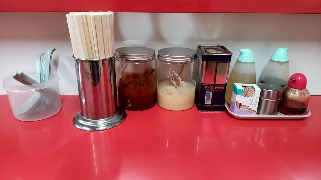 自分が座った座席からは寸胴は2つ確認、麺上げは平ザルと、ラーショのお手本のようです。