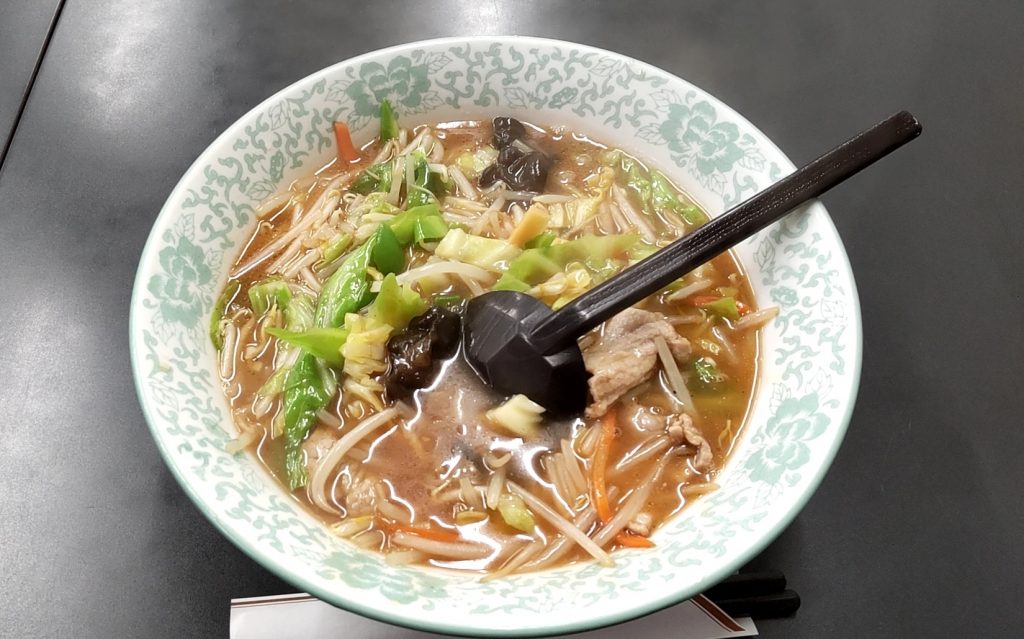 あんとスープが同化していてサラリとしてましたが、麺量もあり食べ応え十分。最後までアツアツでした。