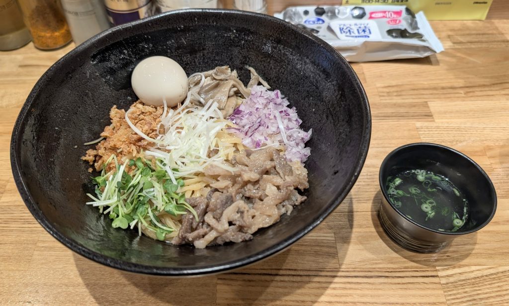 今日のラーメン:東京油組総本店 渋谷組(渋谷) 辛味噌油そばをいただく