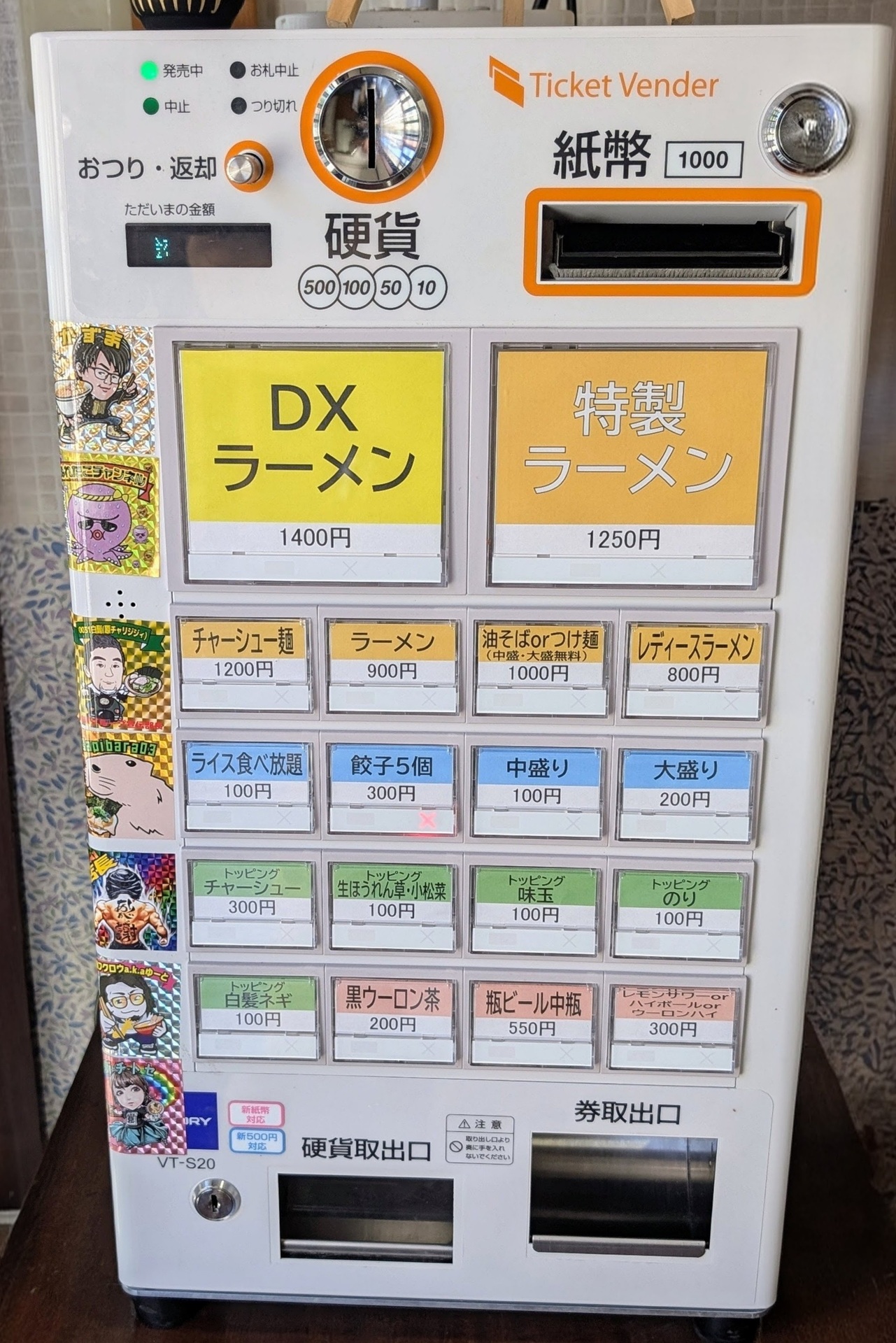 注文はラーメン900円に海苔100円、食べ放題ライス100円のお約束の組み合わせ。