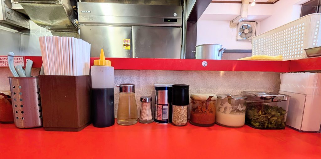 カウンターの薬味たち