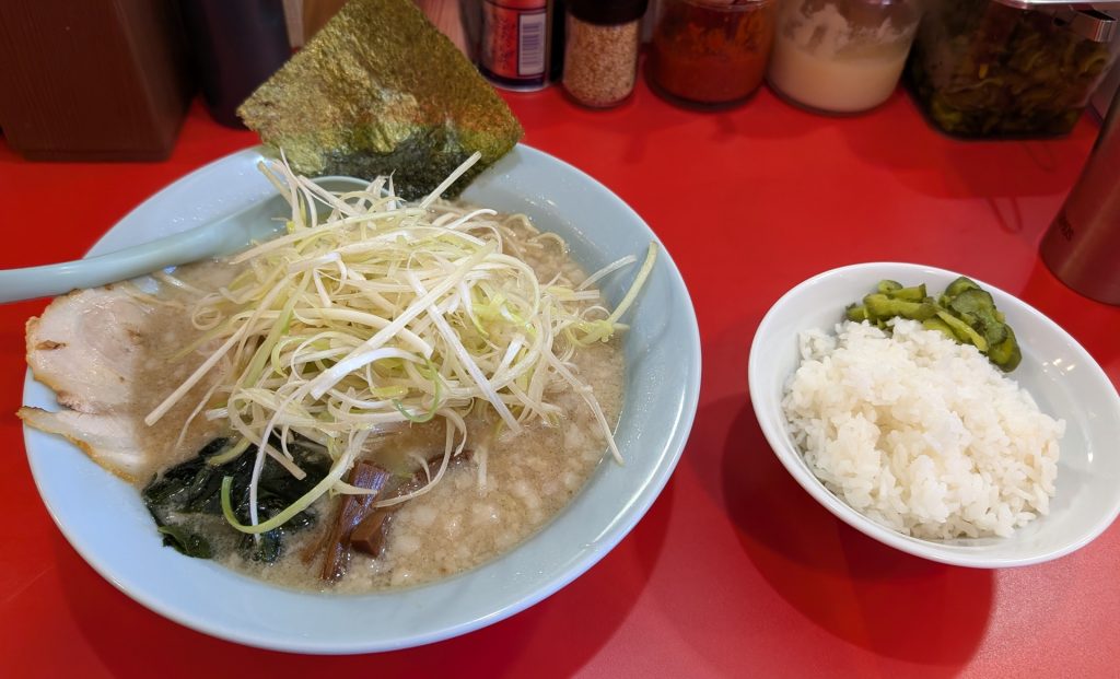 注文はお約束のネギラーメンに小ライスを。