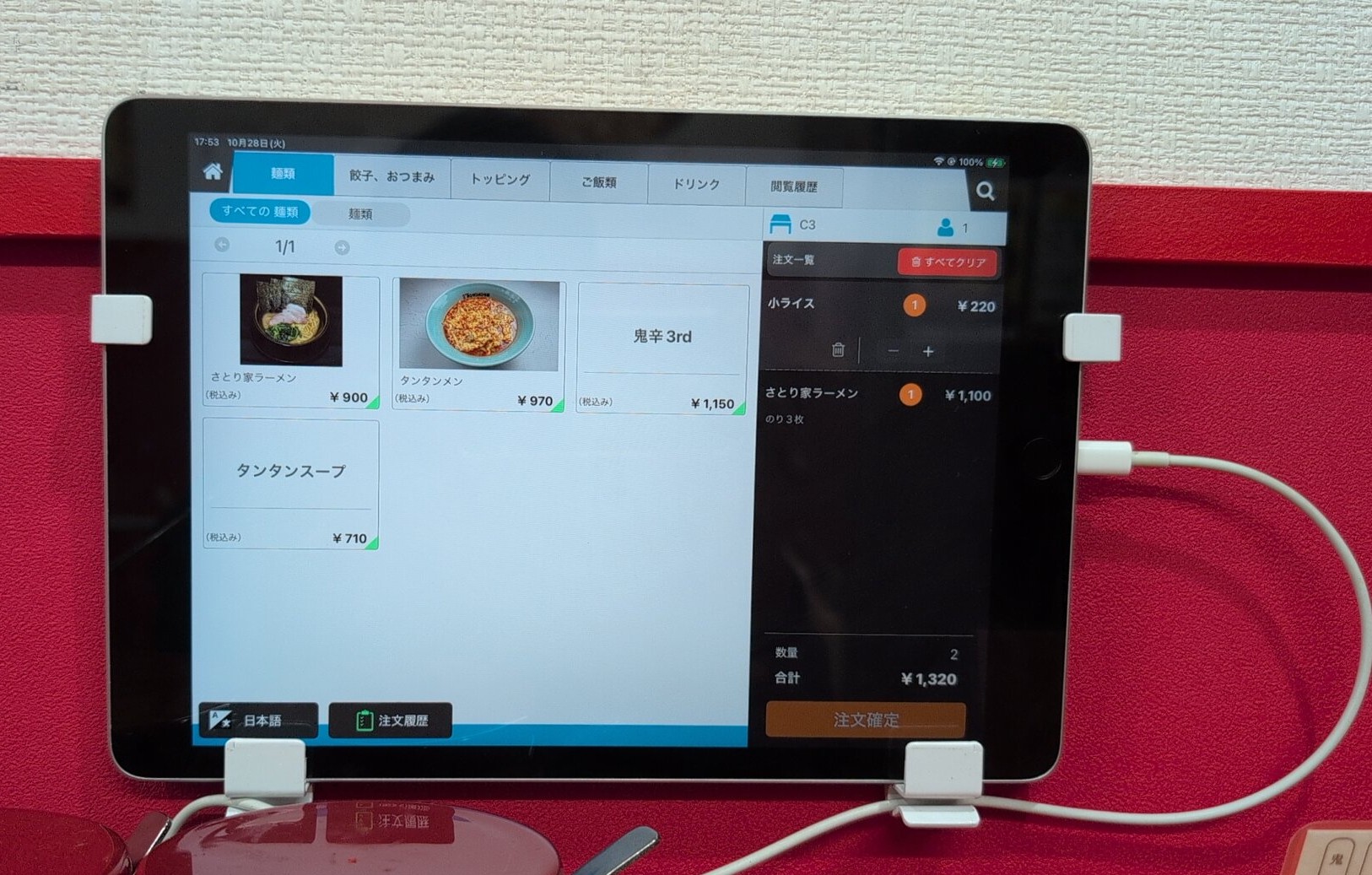 注文はさとり家ラーメン900円、海苔200円、小ライス220円。