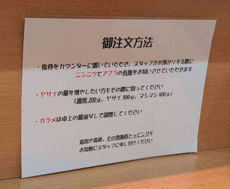 カラメはカウンターにあるとのことでしたので、アブラのみで。