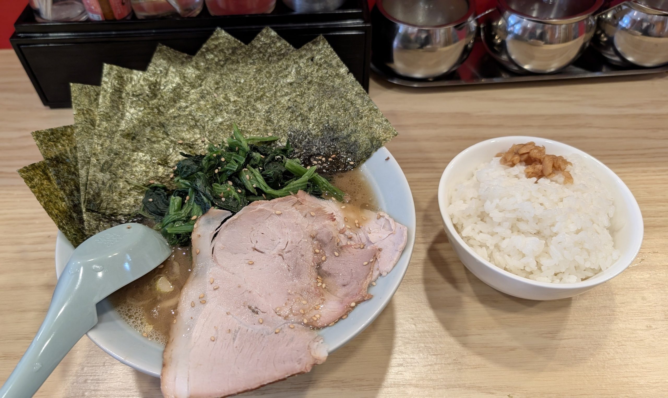 注文はラーメン900円、海苔150円、ライス100円のお約束の組み合わせで。