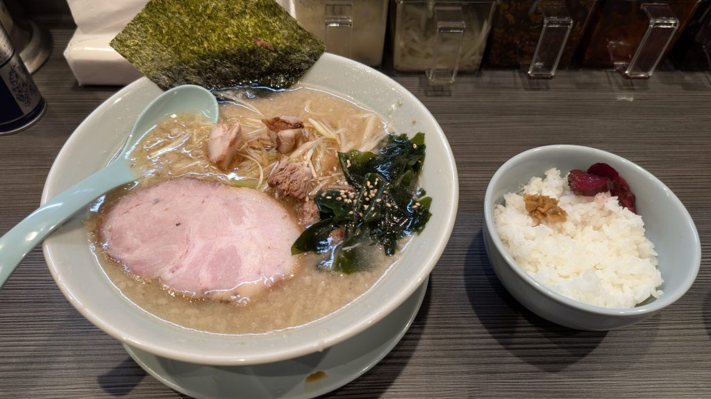 海苔は四つ切のものが1枚。やや薄めで家系好きとしては物足りないものの、風味は悪くなく、ライスに巻いてもいい感じ。